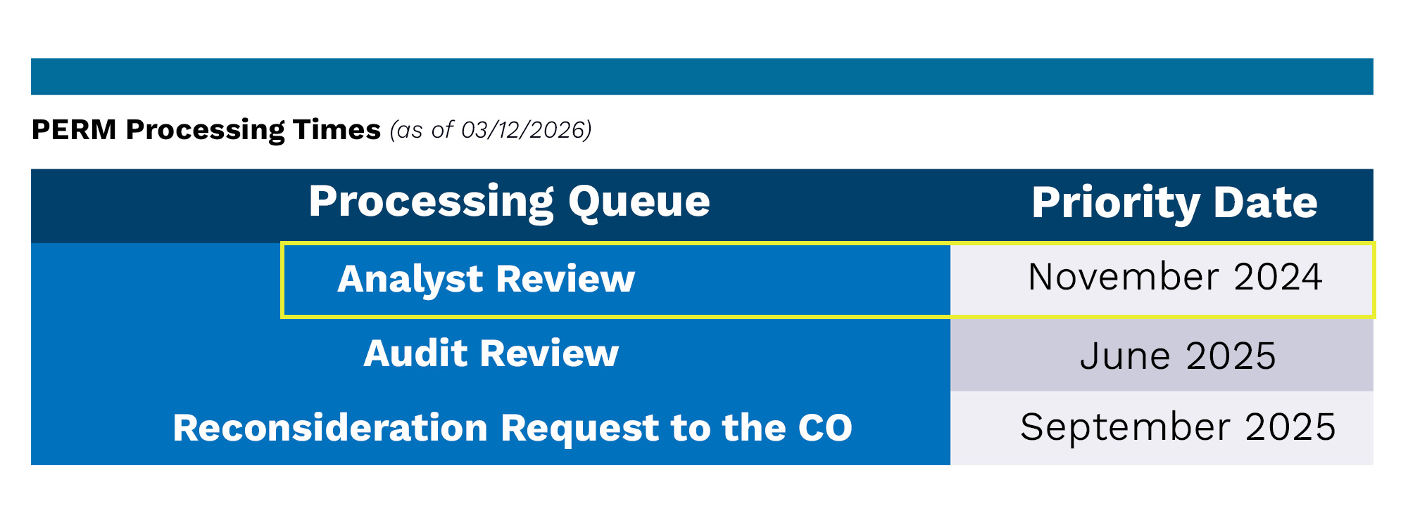 The US Department of Labor PERM Priority Date has been updated on the FLAG system for the period up to 12 March 2026.