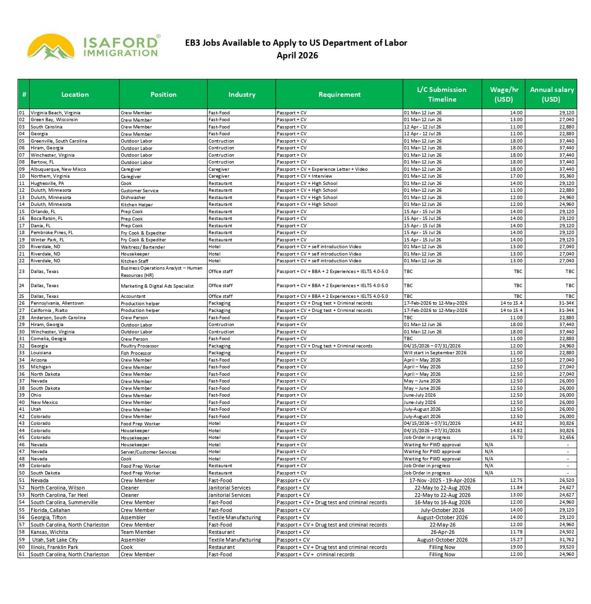 EB-3 NEW JOBS APRIL 2026