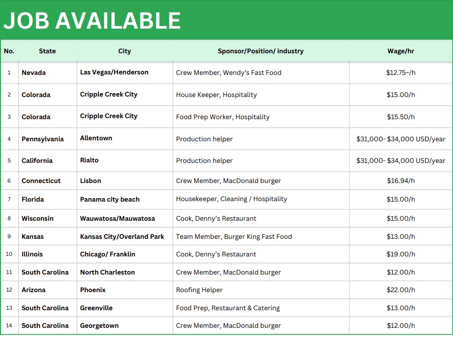 You can choose where you work and your type of work with jobs with fast food crew members (Wendy’s & McDonald’s), food packaging, factory production workers, and many more available.