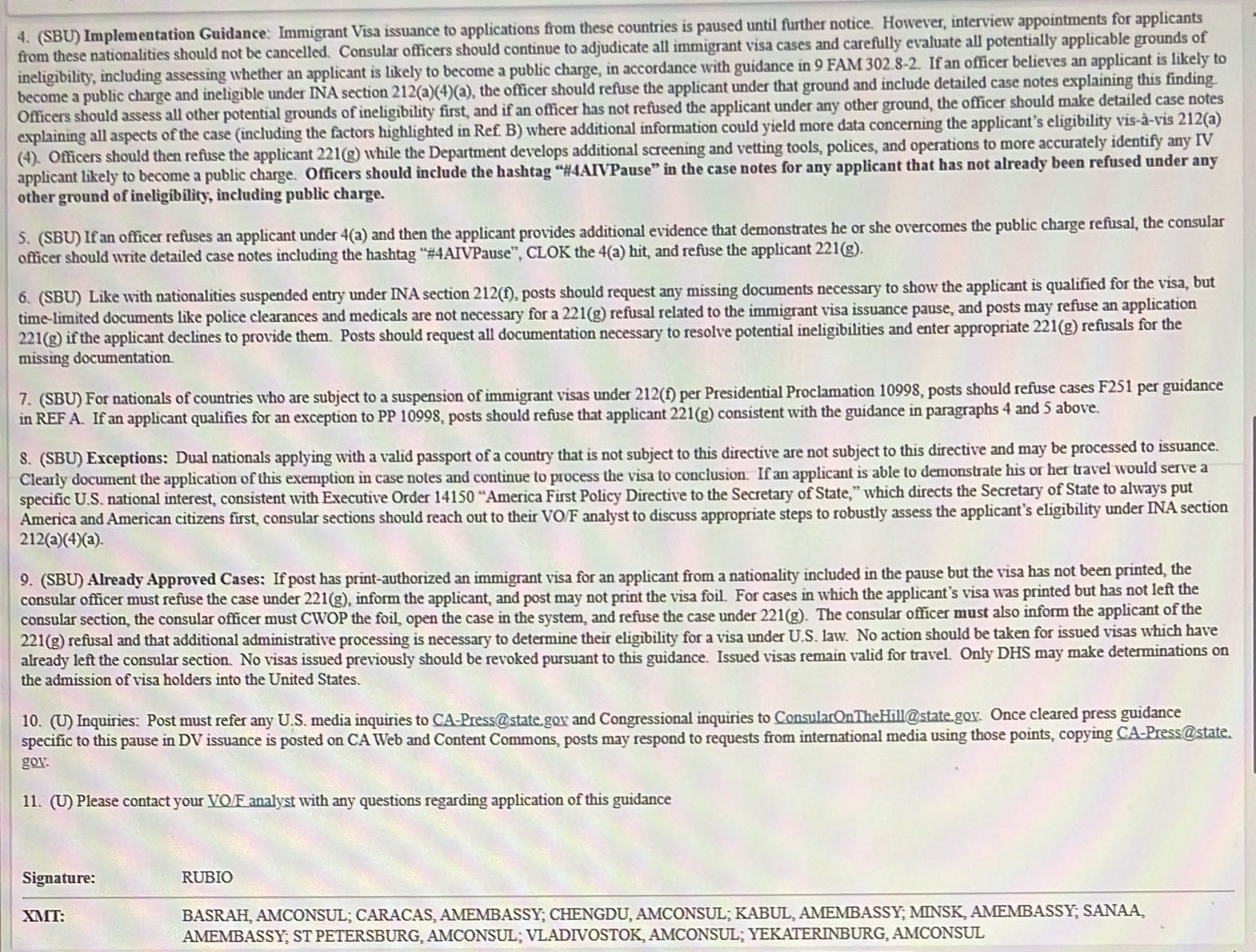 Read the News on Visa Pause: https://www.reuters.com/world/us/us-suspend-visa-processing-75-nations-next-week-fox-news-reports-2026-01-14/