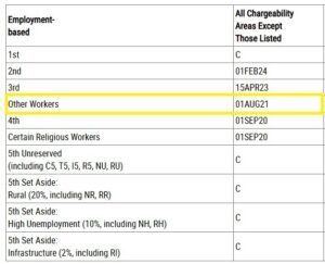 • EB-3 Other Workers: 01 August 2021. Moved forward 17 days from November 2025 Visa Bulletin