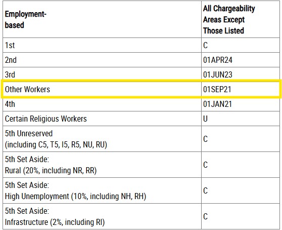 - EB-3 Other Workers: 01 September 2021. No forward movement from January 2026 Visa Bulletin.